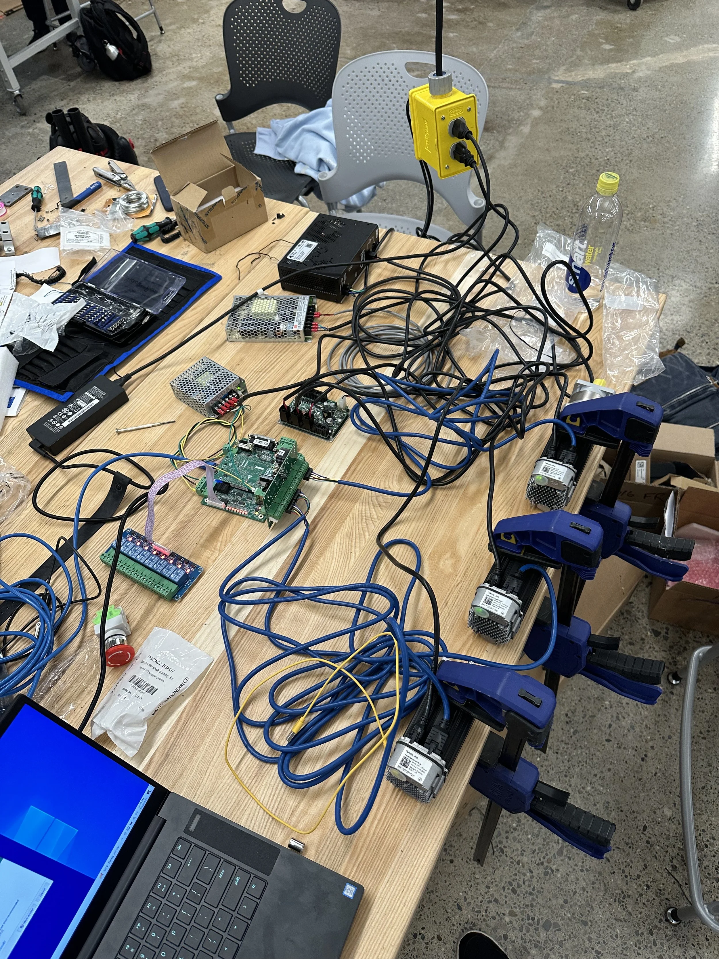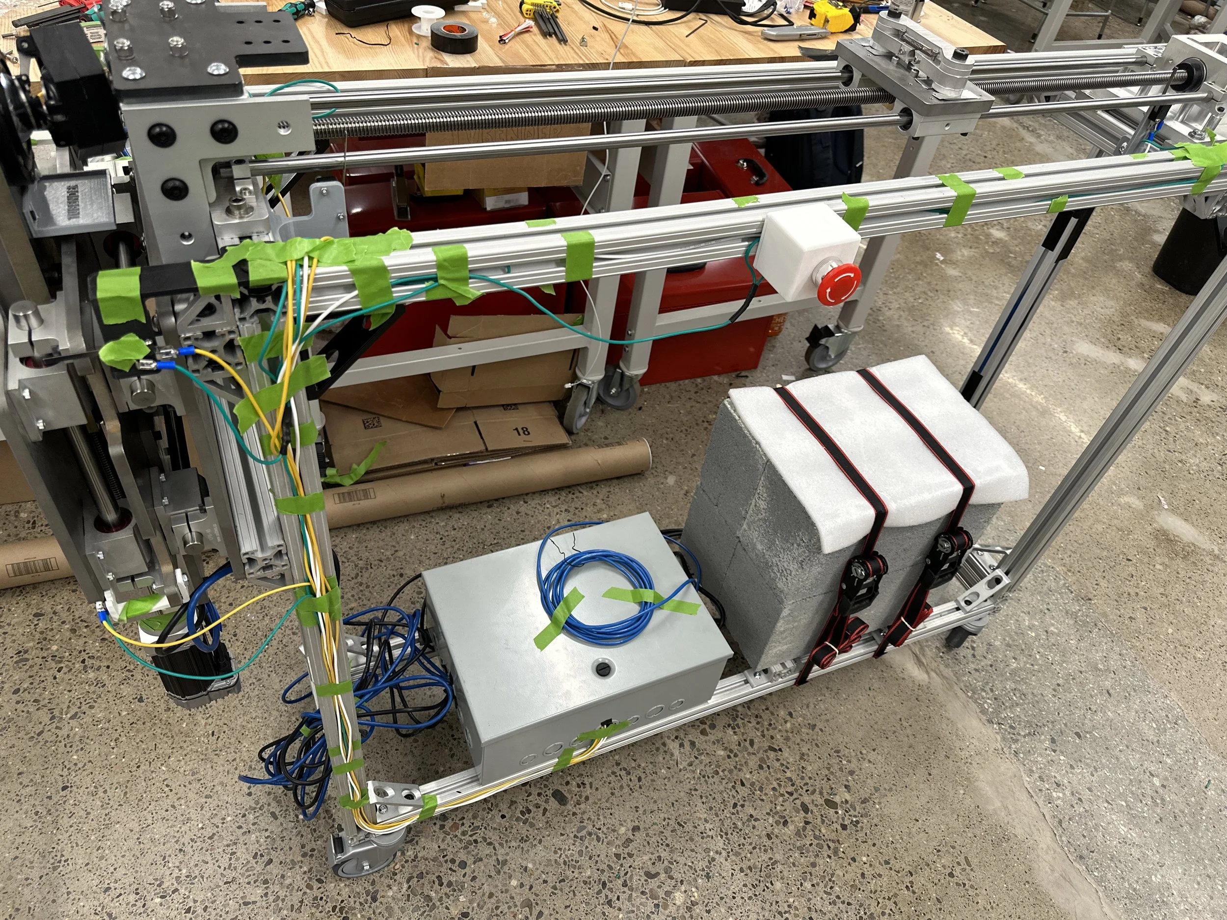 Assembly of the system took only a few days, as we had the electronics and motors up and running prior to receiving the machined parts. We assembled the frame first, and then assembled the XY gantry onto it. The XY gantry weighed almost 100 lbs, so we needed the frame to support the weight while working on it. There were some aspects of the design that we would change in a future iteration for easy of assembly, as there were some bolts that had to be tightened in the 80-20 that were not easily accessed.